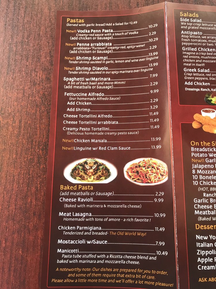 Arrabbiata furious! Creamy, red, spicy, wow! Add chicken or sausage for an additional charge.